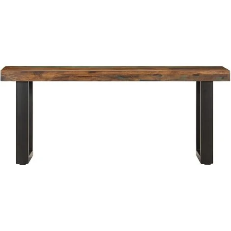 Le dessus de banc est fait de bois de récupération massif, provenant des solives, des planchers et des poutres de support d’anciens bâtiments démolis. De plus, il se compose de différents types de bois comme le teck, le bois dur, le bois tropical, le bois de manguier, etc. Cela signifie que le bois de récupération conserve les caractéristiques de ces différents types de bois. Le bois de récupération est déjà vieilli, patiné et séché. Par conséquent, il ne rétrécit pas et ne se plie pas. Les beaux grains de bois rendent chaque meuble distinctif et légèrement différent l’un de l’autre. De plus, les pieds en acier enduit de poudre ajoutent au style industriel et rendent le banc considérablement stable. Ce banc d’entrée est également facile à assembler.