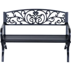 OUTSUNNY Banc 3 Places De Jardin Terrasse Style Rural Chic 127L X 60l X 85H Cm Métal époxy Anticorrosion Noir