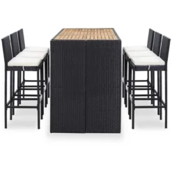 Meuble De Bar De Jardin 8 Pcs – Moderne – Meuble De Jardin Avec Coussins Résine Tressée Noir Balcon 8535