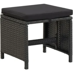 Lot De 4 Tabourets De Jardin Moderne Avec Coussins Résine Tressée Noir,40,5 X 40,5 X 35 Cm