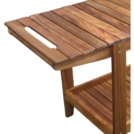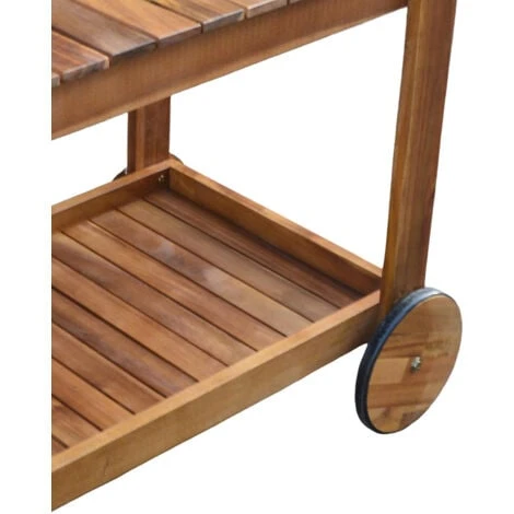 Voici une petite desserte idéale pour votre jardin ou votre terrasse ! A côté de votre barbecue ou de votre salon de jardin, elle sera très utile pour vos repas en extérieur. Sur roulettes, elle se déplace facilement de l’intérieur vers l’extérieur. Son bois en acacia huilé est facile d’entretien.