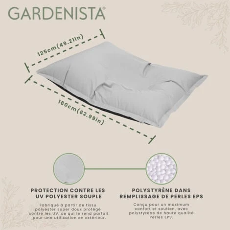Le canapé Gardenista Giant Beanbag est fabriqué avec des matériaux de haute qualité et un excellent savoir-faire pour garantir un produit durable dont vous pourrez profiter pendant de nombreuses saisons.