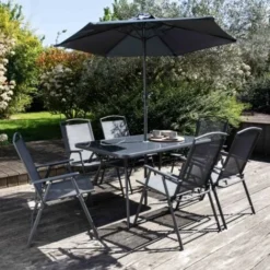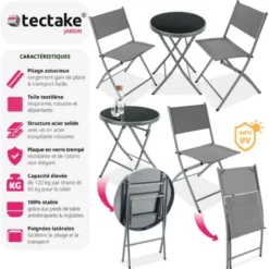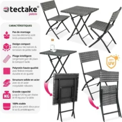 Salon De Jardin 2 Places En Résine Et Acier Gris Anthracite 2 Fauteuils + 1 Table – Meuble De Jardin
