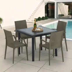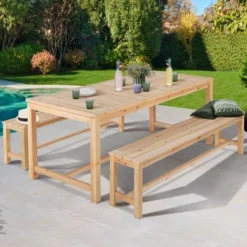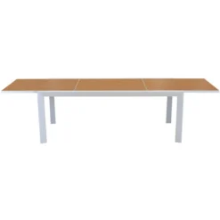 Table De Jardin Extensible Aluminium Blanche 200/300cm + 10 Fauteuils Empilables Textilène – MARCEAU