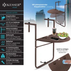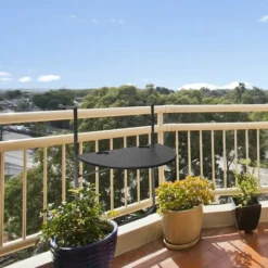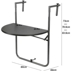 OUTSUNNY Table Suspendue Pour Balcon Dim. 60L X 56,5l Cm Hauteur Réglable 3 Niveaux Métal époxy Noir