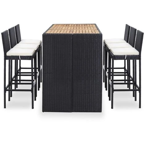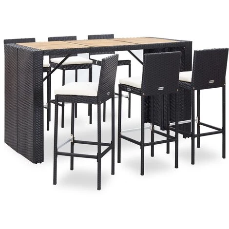 Notre mobilier de bar en résine tressée sera le point de mire de votre jardin, patio ou terrasse. Il a un design élégant. L’armature en acier revêtu de poudre rend l’ensemble solide et robuste et grâce à leurs constructions légères, tous les articles sont faciles à déplacer. Grâce au rotin synthétique résistant aux intempéries et à l’eau, l’ensemble de bar est facile à nettoyer. Le dessus de table est fait de bois d’acacia massif, un bois dur tropical, qui est également résistant aux intempéries et durable. Les coussins de siège, faits en polyester hydrofuge, sont épais, doux et très confortables grâce à leur rembourrage en mousse. Les housses amovibles et lavables sont équipées de fermetures éclair. Remarque : nous vous recommandons de couvrir l’ensemble pendant la pluie, la neige et le gel.