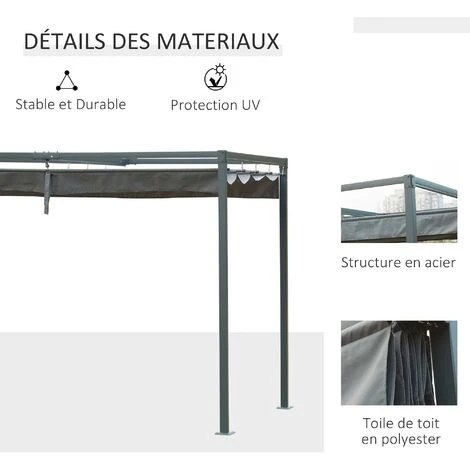 – Pergola rétractable idéale pour se construire une surface ombragée à l’extérieur afin d’installer un salon de jardin, un ensemble à diner de jardin, un barbecue, etc…
