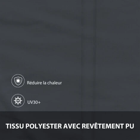 – Toile en polyester haute densité 180 g/m² revêtement PU imperméabilisé et anti-UV (UV30+)