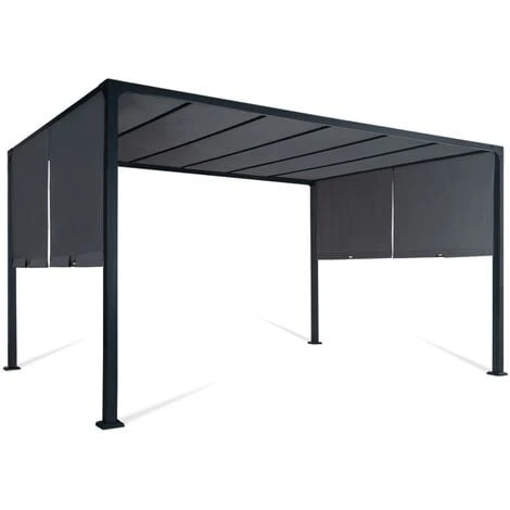 Pergola Coulissante 2 Pans 3×4 M Belvédère De Jardin Toile Gris Anthracite