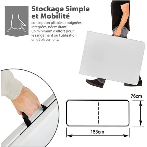 - UNE TABLE POUR TOUS LES UTILISATIONS: la table pliante portable peut être utilisée comme table de pique-nique à l’extérieur, pour un barbecue dans le jardin, ou comme table de buffet à l’intérieur. Utilisez la table comme vous le souhaitez et emmenez-la partout avec vous.