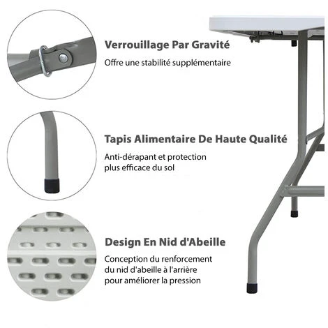 - UN POIDS RÉSISTANT: le dessous de la table pliante est doté d’un design en nid d’abeilles, ce qui lui permet de ne peser que 8 kg. Grâce à son plateau épais et à son design en nid d’abeille, la table pliante peut supporter une charge importante.