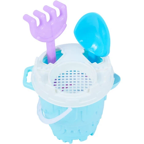 COMPREND : 2 bacs à sable intégrés et 6 accessoires de plage comme un seau avec couvercle tamis, un arrosoir, un râteau, une pelle et un moule en forme d’hippocampe. Le seau à la forme d’un château. Les bacs sont amovibles pour un nettoyage facile. Veuillez noter que le sable n’est pas fourni.