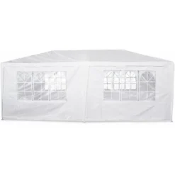 Toiles de côtés : 100% Polyéthylène, densité 100g/m²; 4 rideaux (3 fenêtres translucides sur chaque), et 2 rideaux sans fenêtres translucides (côtés).