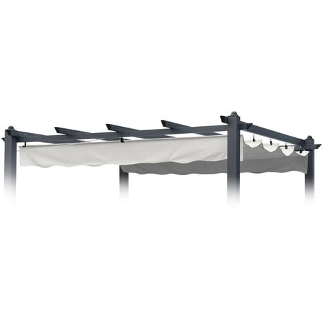 La toile peut être positionnée sur un système coulissant afin qu’elle puisse être fermée en cas de vent fort ou pendant l’hiver lorsque la tonnelle n’est pas utilisée. Tissu polyester blanc renforcé 200 g/m2 déperlant et résistant aux intempéries. Assemblage simple et rapide.