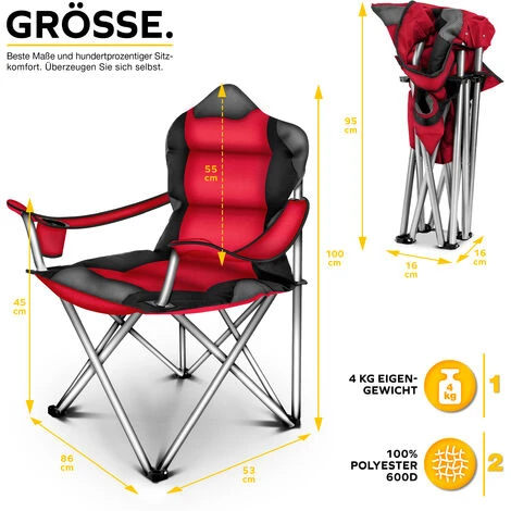 Avec notre chaise de camping, vous pourrez profiter du prochain voyage, du camping, de la fête dans le jardin ou dans tout autre environnement.