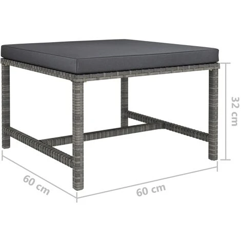 Ce repose-pied sectionnel allie style et fonctionnalité et est conçu pour être utilisé à l’extérieur toute l’année. Grâce à la résine tressée résistante aux intempéries, le repose-pied est léger, résistant à l’usure et adapté à une utilisation quotidienne. Le repose-pied est doté d’un cadre robuste en acier enduit de poudre, qui est très durable. Ce repose-pied de jardin est spécialement conçu pour servir comme une partie de l’ensemble de salon et il peut également être utilisé comme table basse. Vous pouvez le combiner avec d’autres segments modulaires comme canapé de milieu et canapé d’angle pour créer vos propres configurations de salon de jardin ! Les coussins épais et amovibles sont très confortables. Remarque : Afin de prolonger la durée de vie de vos meubles d’extérieur, nous vous recommandons de les nettoyer régulièrement et de ne pas les laisser à l’extérieur sans protection inutilement.Nettoyage : Utiliser une solution savonneuse douce.Stockage : Si possible, stockez dans un endroit frais et sec à l’intérieur. Si le produit est stocké à l’extérieur, protégez-le avec une housse imperméable. Essuyez et séchez l’excès d’eau ou de neige des surfaces planes après la pluie ou une chute de neige. Permettez une circulation d’air suffisante afin d’éviter les dommages liés à l’humidité.